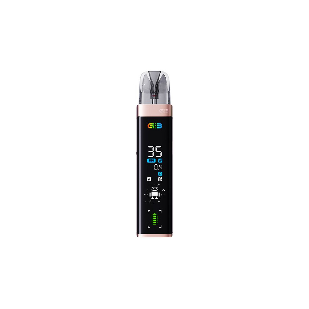 E-cigareta s POD systémem - integrovaný monočlánek 1000 mAh / nastavitelný výkon až 35 W - kapacita cartridge s integrovanou žhavicí hlavou 0,9 ohm - 2,5 ml / 0,4 ohm - 3 ml.