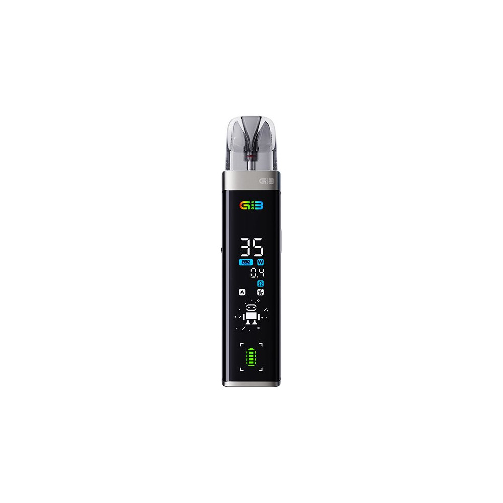 E-cigareta s POD systémem - integrovaný monočlánek 1000 mAh / nastavitelný výkon až 35 W - kapacita cartridge s integrovanou žhavicí hlavou 0,9 ohm - 2,5 ml / 0,4 ohm - 3 ml.