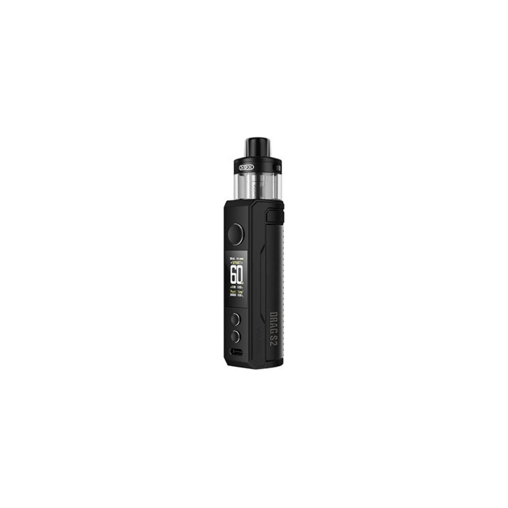 Grip Voopoo Drag S2 na Vás udělá dojem svým vynikajícím výkonem a kompaktností. Po úspěšném tažení první verze vapingovým prostředí dostává Drag S2 nový kabát, režimy a cartridge. Tělo gripu obsahuje integrovaný monočlánek o kapacitě 2500 mAh a je vyrobeno z prvotřídního kovu a kůže pro pohodlné držení. Upgradovaný čip Gene.TT 2.0 nabízí nastavitelný výkon až 60 W, režimy Smart, RBA, ECO a ochrany proti zkratu, přehřátí a podbití, či osmi vteřinovou ochranu žhavení. Nabíjení zajišťuje USB-C vstup. Cartridge PnP X se stejnojmennou žhavicí hlavou pojme až 5 ml vašeho oblíbeného liquidu. V základním balení budete mít na výběr ze dvou žhavicích hlav, a to PnP X o odporu 0,3 ohm a PnP X o odporu 0,6 ohm. Žhavicí hlavu je nezbytné pravidelně měnit pro zachování chuti a funkčnosti zařízení. Její výdrž je individuální.