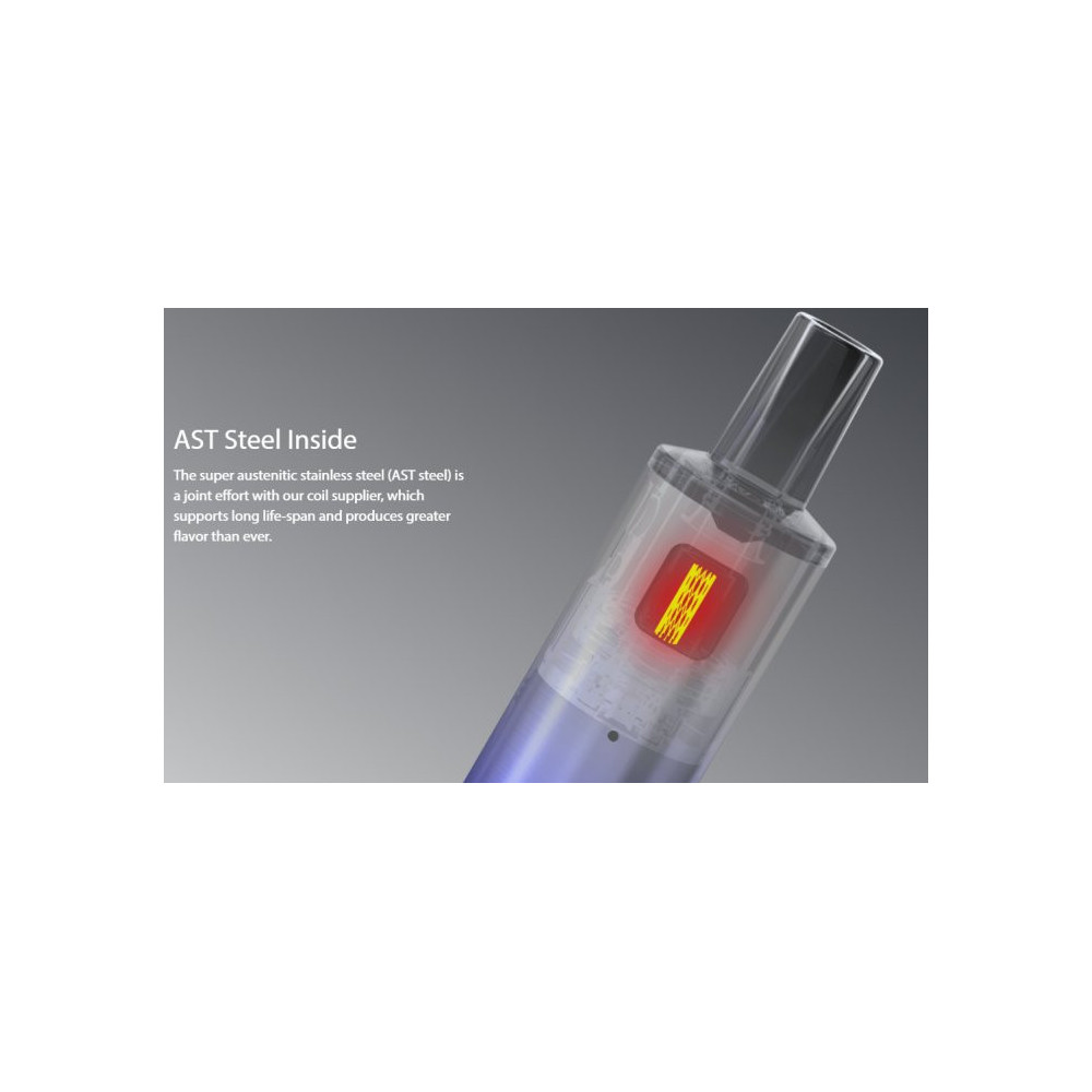 Jednoduchá kapesní elektronická cigareta kompaktních rozměrů s POD systémem. Moderní a designové tělo e-cigarety skrývá vestavěnou baterii s kapacitou 1000 mAh s automatickým spínačem a konstantním napětím pro stabilní výkon. Nový čip AVATAR IC 1.0 disponuje ochranou proti zkratu, přehřátí a vybití, či 8 vteřinovou ochranou žhavení. Vyměnitelná cartridge (POD) se žhavicí hlavou s odporem 1 ohm pojme až 2 ml liquidu.