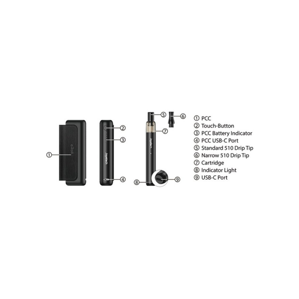 Elegantně zpracovaná elektronická cigareta, která je dokonale sladěná s PPC pouzdrem. Tato již legendární e-cigareta disponuje baterií 480 mAh, barevným LED indikátorem stavu nabití, vyměnitelnou cartridge o objemu 2 ml se žhavicí hlavou Mesh o odporu 1 ohm a náustky typu 510 standard a narrow pro MTL vaping. PCC pouzdro o kapacitě monočlánku 1500 mAh nabízí půvabné spojení kovu a kůže. Po vložení e-cigarety do PCC pouzdra dojde k nadčasovému magnetickému propojení a následnému dobíjení baterie e-cigarety. PCC pouzdro i samostatnou e-cigaretu lze dobíjet i přes USB-C port, a díky indikátoru stavu nabití se sami rozhodnete, kdy je ten pravý čas na dobití. Žhavicí hlavu je nezbytné pravidelně měnit pro zachování chuti a funkčnosti zařízení. Její výdrž je individuální.