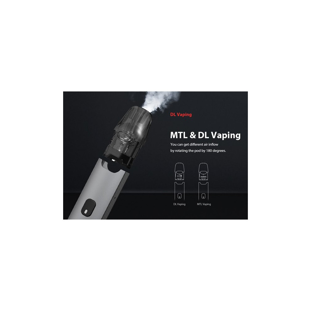 Ultimátní elektronická cigareta s POD systémem a bezprecedentním tělem z austenitické nerezové oceli (AST-STEEL), která je obzvláště odolná vůči korozi a běžně se používá v lékařství. Vestavěná baterie o kapacitě 800 mAh disponuje LED indikátorem stavu nabití a USB-C portem pro rychlé nabíjení za pouhých 30 minut. Cartridge (POD) s pohodlným bočním plněním o objemu 2 ml obsahuje vyměnitelné atomizery EN Mesh o odporu 0,8 ohm (plně kompatibilní se žhavicími hlavami Uwell Caliburn G). Přívod vzduchu se nachází na boku těla baterie a dle Vašeho požadavku si můžete zvoliT mezi DL a MTL stylem vapování - závisí na způsobu vložení cartridge (viz obrázek a video).
