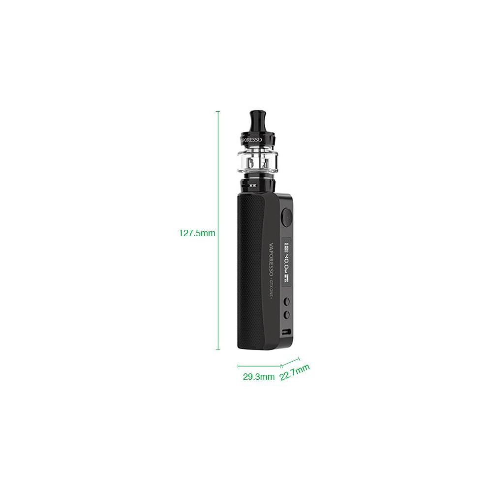 Grip Vaporesso GTX ONE se prezentuje vestavěnou baterií o kapacitě 2000 mAh s rychlým 2A USB-C nabíjením a nastavitelným výkonem až 40W. Propracovaná konstrukce gripu disponuje přehledným 0,69 palcovým displejem a pohodlným spínacím tlačítkem. Mezi další přednosti patří ochrana proti zkratu, přehřátí a nízkému odporu. Všechny fanoušky MTL a DTL vapování potěší přiložený clearomizer GTX Tank s vrchním plněním, objemem nádržky 3 ml a žhavicími hlavami GTX. Náhradní žhavicí hlavy najdete ZDE