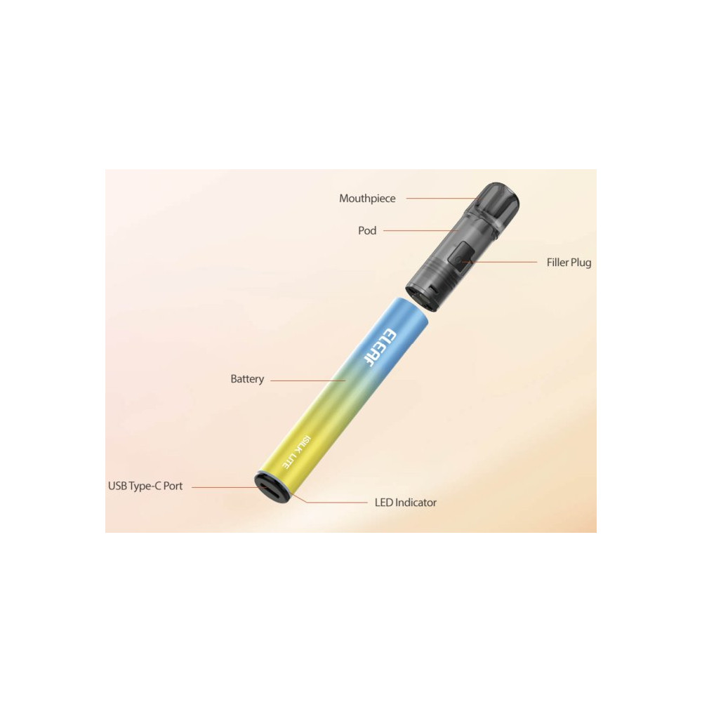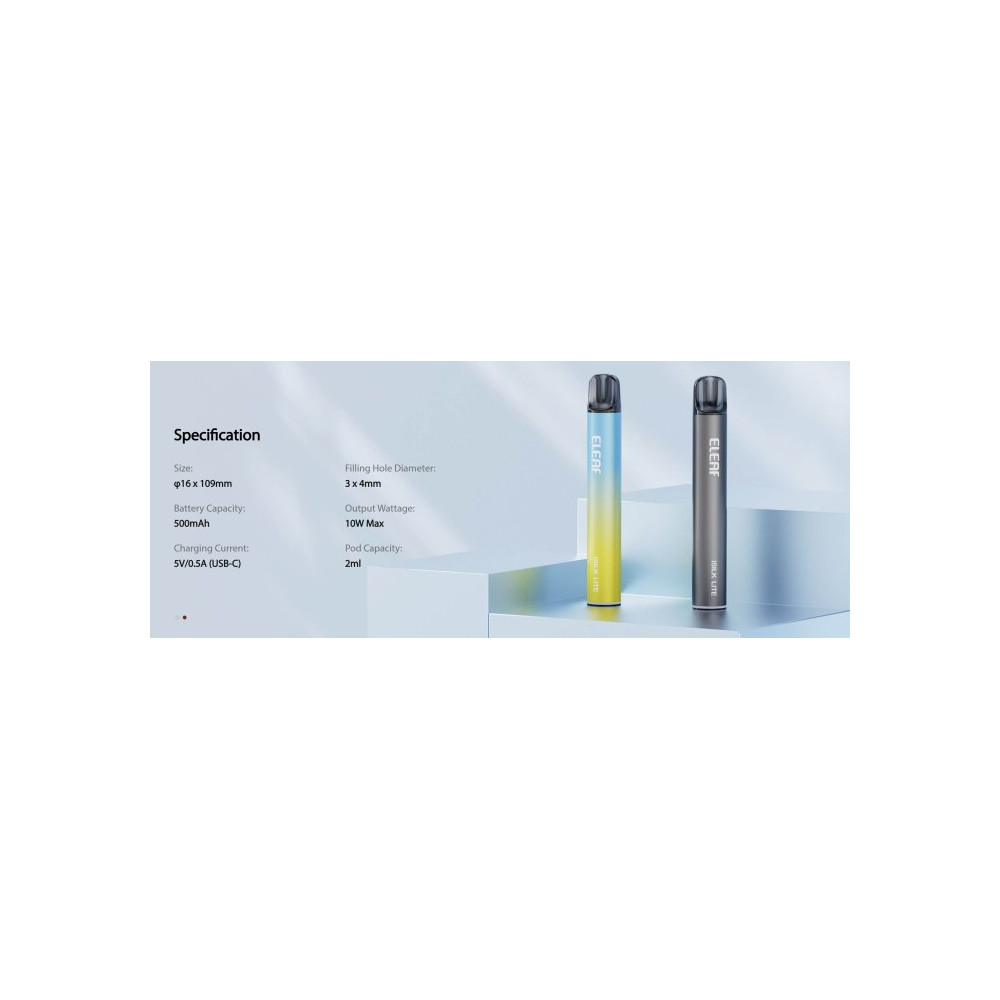 Eleaf iSILK Lite vyniká stylovým designem ve tvaru pera a nabízí jednoduché používání s 2 ml plnitelnou cartridge (0,8 ohm a 1,0 ohm). Zařízení je vybaveno vestavěnou dobíjecí baterií o kapacitě 500 mAh, která Vám poskytne dostatek energie pro celý den. O stavu baterie Vás přehledně informuje dvoubarevný indikátor, díky kterému budete mít vždy jistotu, že je zařízení připravené k použití. Pro rychlou a plynulou aktivaci postačí třikrát potáhnout během dvou sekund – žádná složitá tlačítka, jen čistý požitek z vapování. iSilk Lite je ideální volbou pro ty, kteří hledají hladký a bohatý zážitek z vapování v elegantním a praktickém provedení. Zařízení ISILK je kompatibilní s cartridgemi ELF BAR ELFA a TAPPO. Žhavicí hlavu je nezbytné pravidelně měnit pro zachování chuti a funkčnosti zařízení. Její výdrž je individuální.