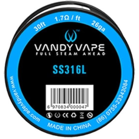 Vandy Vape SS316L odporový drát s průměrem 26GA (0,4 mm).