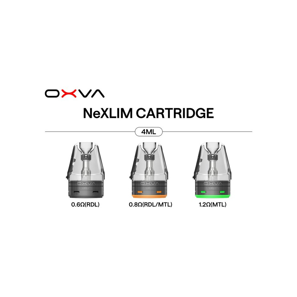 Náhradní cartridge NeXLIM s integrovanou žhavicí hlavou a vrchním plněním, které pojmou až 4 ml liquidu. POZOR - nejsou kompatibilní se zařízením z řady OXVA XLIM !
