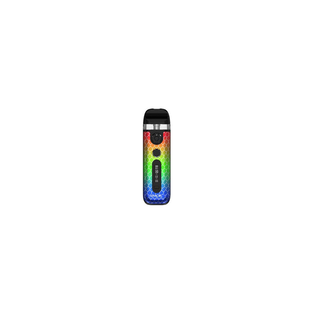 Krásný na povrchu, silný zevnitř - stručná, ale výstižná charakteristika elektronické cigarety Smoktech Novo 5. Kompaktní tělo baterie přináší vestavěný monočlánek o kapacitě 900 mAh, nastavitelný výkon až 30 W, inovativní regulaci přívodu vzduchu a rychlé nabíjení pomocí USB-C portu. Na přední straně je umístěn OLED displej, který umožňuje jednoduché nastavení hodnot a zobrazuje všechny potřebné informace. Tvorbu páry zajišťuje nejen spínací tlačítko, ale i systém automatického žhavení - stačí pouze potáhnout z náustku. Vyměnitelná cartridge (POD) se žhavicí hlavou o odporu 0,7 ohm pojme až 2 ml liquidu. Žhavicí hlavu je nezbytné pravidelně měnit pro zachování chuti a funkčnosti zařízení. Její výdrž je individuální.