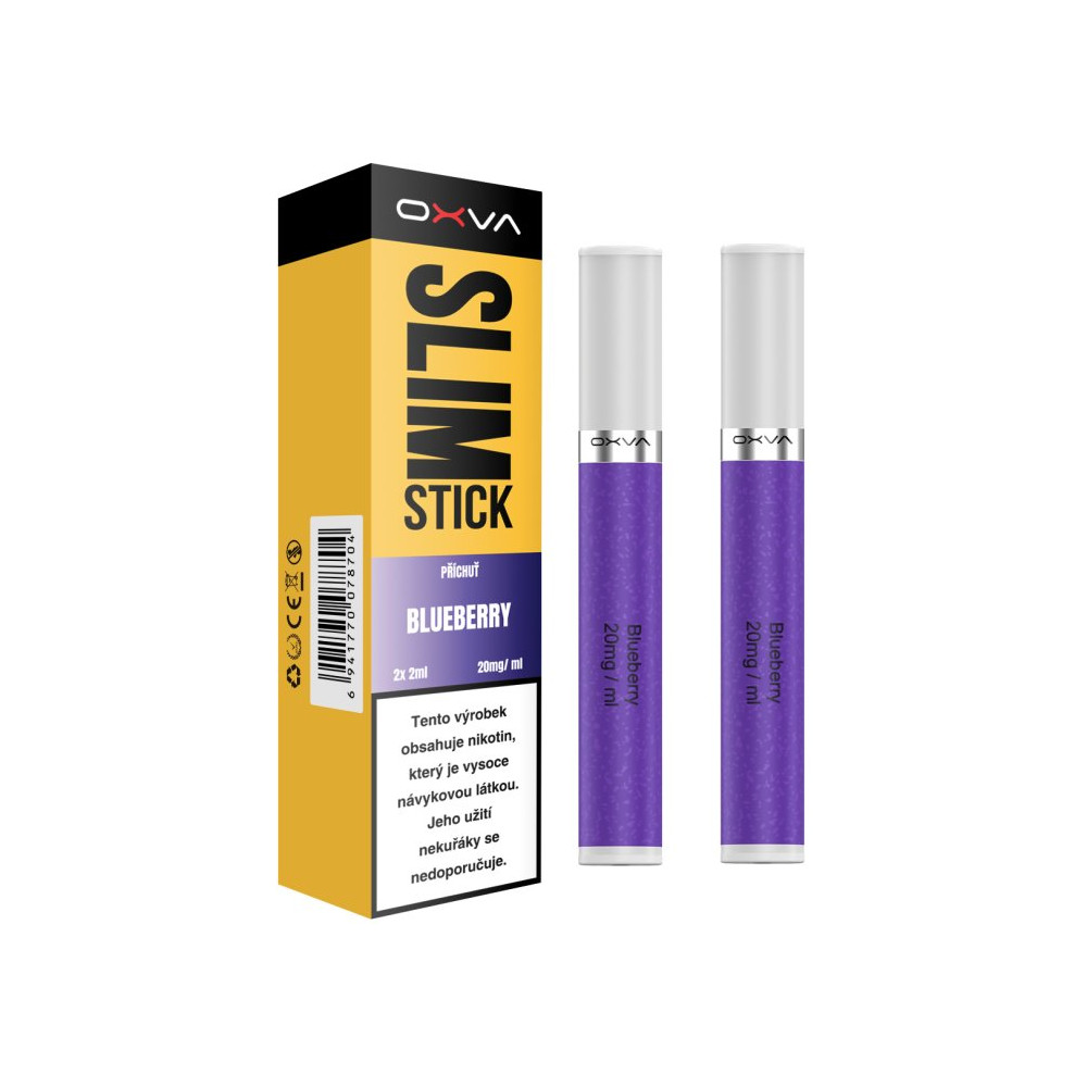 Příchuť: Chuť šťavnatých borůvek. Předplněné cartridge jsou kompatibilní s OXVA SLIMSTICK...