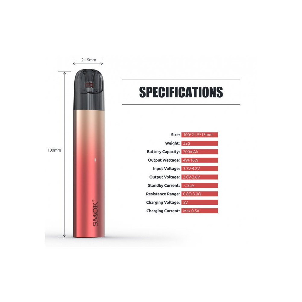 Ideální elektronická cigareta s POD systémem ve stylu "Pocket" (kapesní velikost). Vyměnitelná cartridge (POD) z PCTG materiálu je vybavena žhavící hlavou Meshed o odporu 0,9 ohm a pojme až 3 ml liquidu.