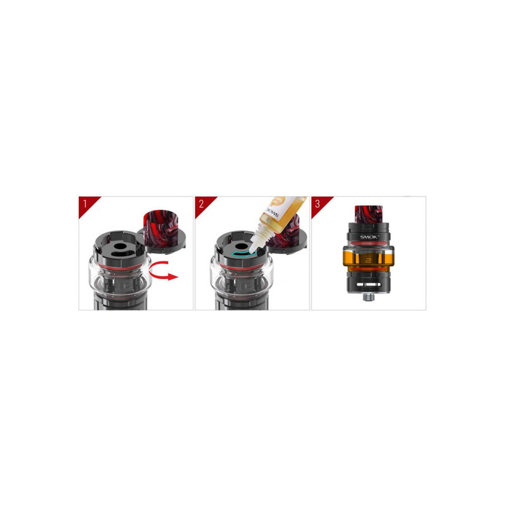 Využívá systém horního plnění. Po odsunutí vrchní části plníte liquid otvorem přímo do těla clearomizeru s objemem 6,0 ml.