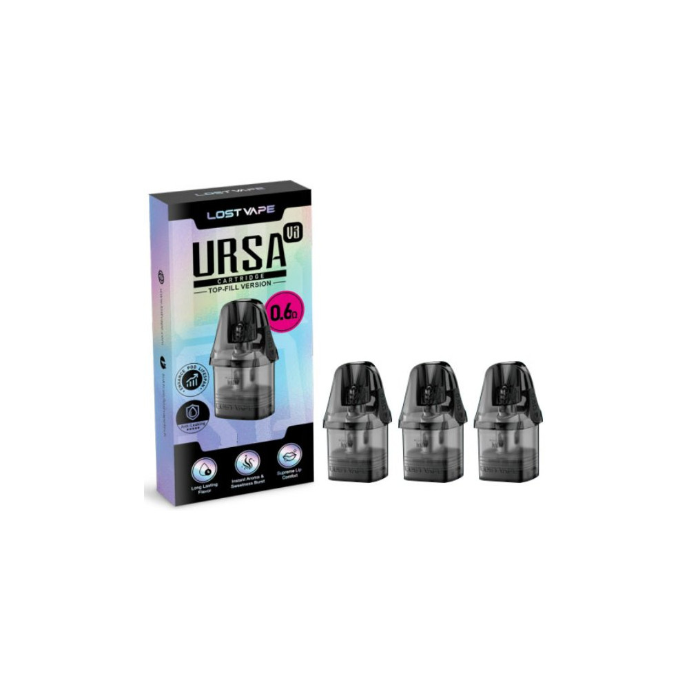 URSA Cartridge V3 s přívětivým plněním, navržené pro čistší a snadnější plnění, se zvýšenou odolností proti nechtěnému úniku kapaliny. Žhavicí hlavu je nezbytné pravidelně měnit pro zachování chuti a funkčnosti zařízení. Její výdrž je individuální.