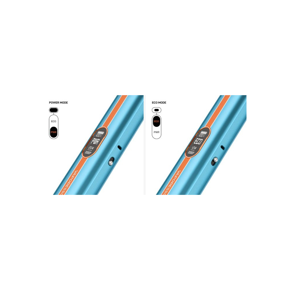 Vaporesso Vibe Pod Kit. Novinka zaujme nejen moderním vzhledem, ale především inovativní technologií Dual Mesh Coil, která přináší plnější chuť liquidu a delší životnost cartridge. Tělo baterie je vyrobeno z lehkého a odolného materiálu, který v sobě ukrývá monočlánek o kapacitě 1100 mAh s rychlým USB-C nabíjením (5V / 2A) a výkonným čipem AXON. Ten umožňuje přepínání mezi režimy ECO (úsporný výkon) a PWR (plný výkon), přičemž zařízení zároveň umožňuje regulaci airflow a přizpůsobení potahu od utaženého po volný. Na přední straně baterie se nachází praktické spínací tlačítko a barevný 0,54 palcový TFT displej, který informuje o stavu baterie i aktuálním režimu. Vyměnitelná cartridge o objemu 4,5 ml je navržena pro maximální výdrž. Žhavicí hlavu je nezbytné pravidelně měnit pro zachování chuti a funkčnosti zařízení. Její výdrž je individuální.