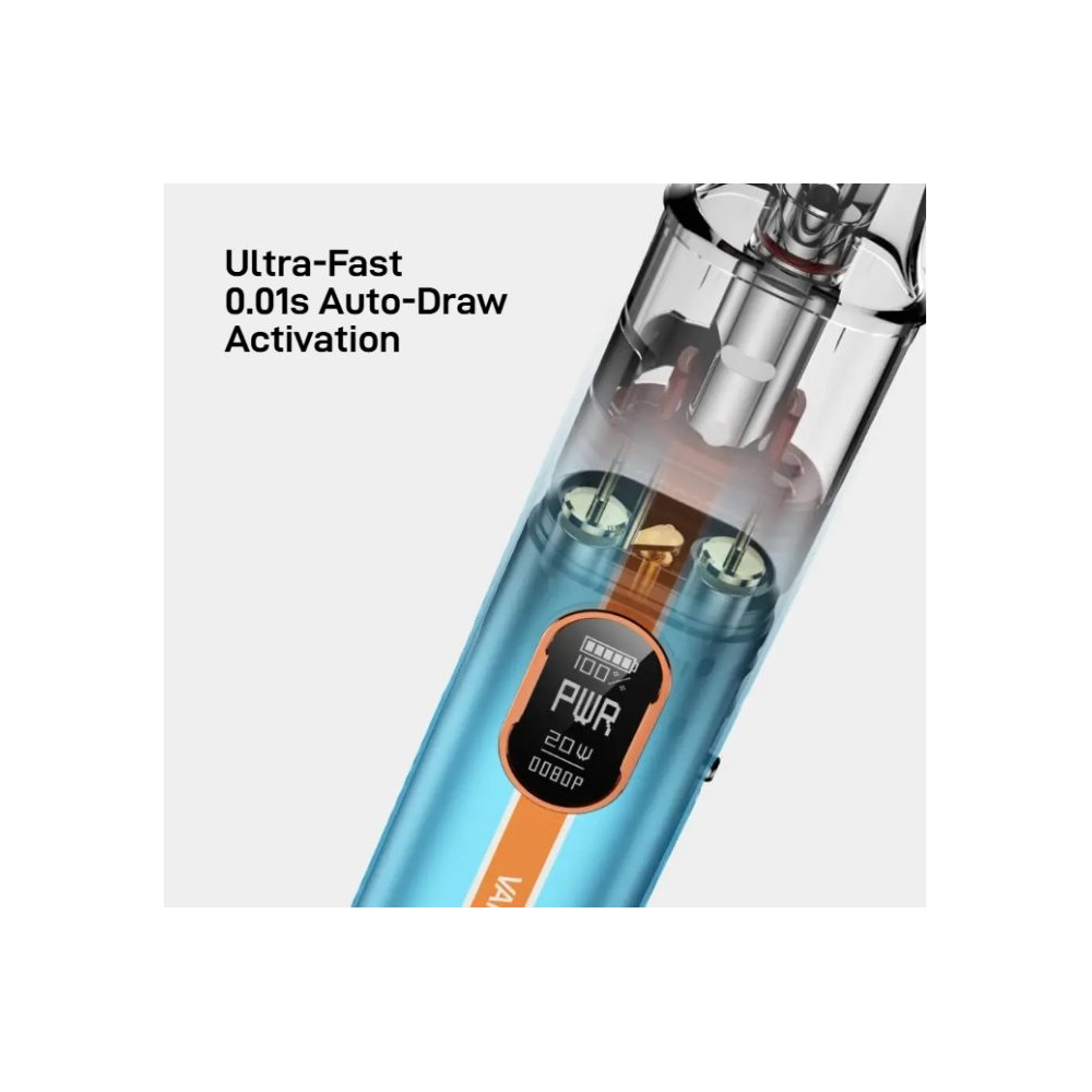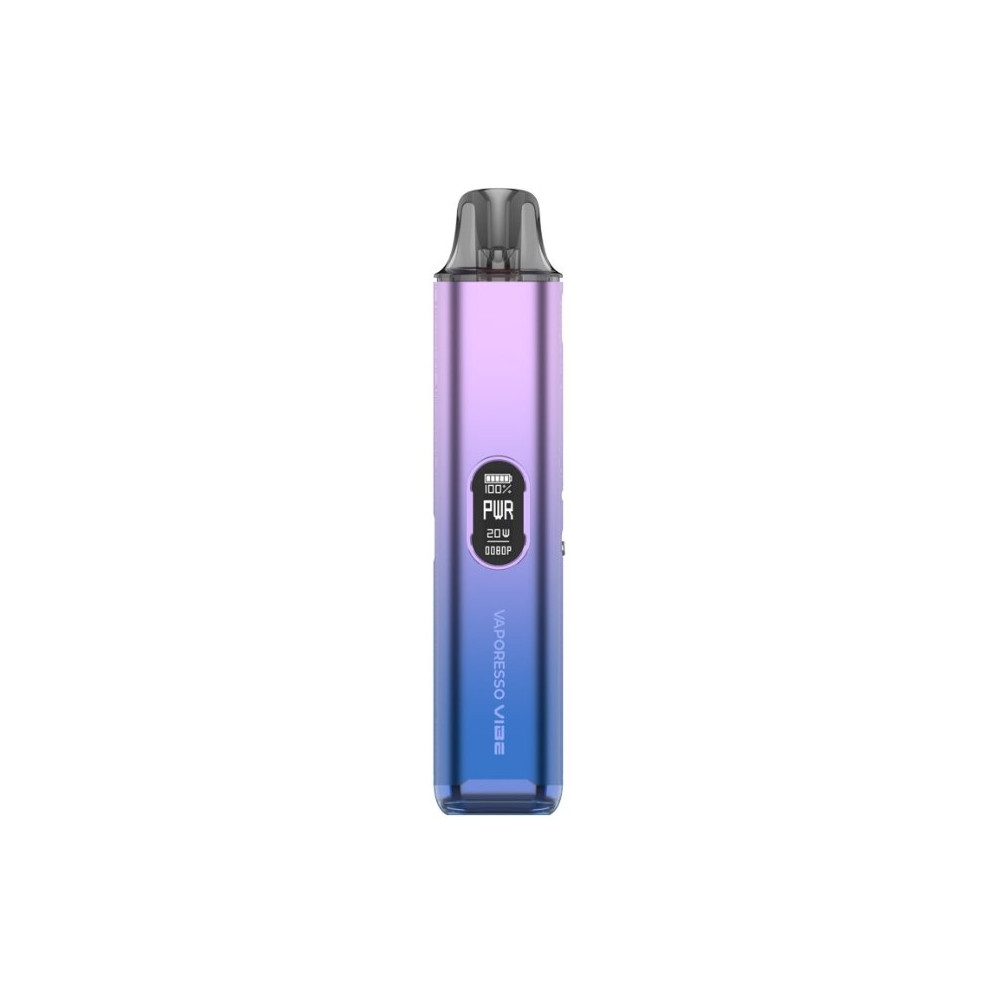 Vaporesso Vibe Pod Kit. Novinka zaujme nejen moderním vzhledem, ale především inovativní technologií Dual Mesh Coil, která přináší plnější chuť liquidu a delší životnost cartridge. Tělo baterie je vyrobeno z lehkého a odolného materiálu, který v sobě ukrývá monočlánek o kapacitě 1100 mAh s rychlým USB-C nabíjením (5V / 2A) a výkonným čipem AXON. Ten umožňuje přepínání mezi režimy ECO (úsporný výkon) a PWR (plný výkon), přičemž zařízení zároveň umožňuje regulaci airflow a přizpůsobení potahu od utaženého po volný. Na přední straně baterie se nachází praktické spínací tlačítko a barevný 0,54 palcový TFT displej, který informuje o stavu baterie i aktuálním režimu. Vyměnitelná cartridge o objemu 4,5 ml je navržena pro maximální výdrž. Žhavicí hlavu je nezbytné pravidelně měnit pro zachování chuti a funkčnosti zařízení. Její výdrž je individuální.