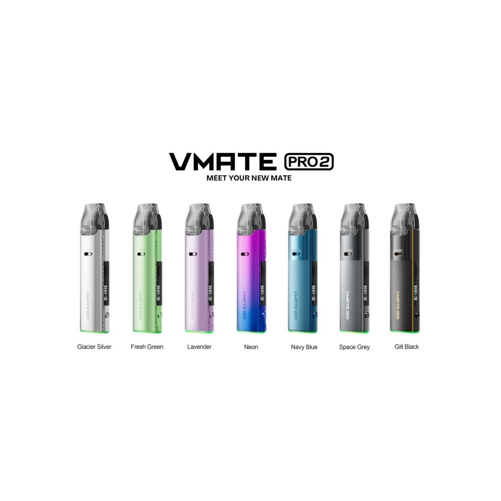 VOOPOO Vmate Pro 2 je chytrý pod systém nové generace v rámci oblíbené série Vmate, který spojuje elegantní design s výkonnými vylepšeními. Disponuje vestavěnou 1500 mAh baterií, maximálním výkonem 30 W a dvěma režimy potahu – ECO pro úsporný chod s inteligentní regulací výkonu a POWER pro ruční nastavení a intenzivní produkci páry. Zařízení je vybaveno 3 ml cartridge s horním plněním a ochranou proti protékání, 0,54 " OLED displejem a plynulou regulací airflow, díky čemuž si ho užijí jak příznivci MTL, tak i RDL stylu vapování.