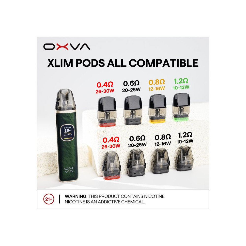 Elektronická cigareta OXVA Xlim Pro byla vyhlášena nejoblíbenějším POD zařízením mezi vapery za období 2023 a 2024. Výrobce přichází s druhou řadou, která si pro Vás přichystala mnoho novinek. Elegantní a čistý design těla baterie zdobí 0,56 palcový barevný Ultra-HD displej, který poskytuje vynikající přehled o nastavení všech hodnot. Vestavěný monočlánek nabízí vyšší kapacitu baterie 1300 mAh, USB-C port s 2A nabíjením a výkonem až 30 W. Na boční straně baterie je umístěno regulační tlačítko pro přívod vzduchu, díky kterému si jednoduše nastavíte RDL nebo MTL režim vapování. V obsahu balení najdete cartridge Xlim s horním plněním - není potřeba vytahovat cartridge z těla baterie při plnění liquidem. Žhavicí hlavu je nezbytné pravidelně měnit pro zachování chuti a funkčnosti zařízení. Její výdrž je individuální.
