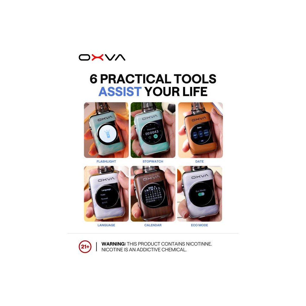 OXVA XLIM SQ PRO 2 představuje špičku mezi moderními POD systémy – elegantní zařízení, které v sobě spojuje technologické inovace a důraz na design. Díky dotykovému 1,09” HD displeji získáváte naprostou kontrolu nad svým vapováním: od přizpůsobení výkonu, sledování počtu potahů, až po přístup k užitečným funkcím, jako je kalendář, svítilna nebo animace domovské obrazovky. Srdcem zařízení je výkonná vestavěná baterie o kapacitě 1600 mAh, která v ECO režimu zajistí provoz až na celý týden. Nabíjení probíhá prostřednictvím moderního USB-C konektoru a plného dobití dosáhnete už za 45 minut. I přes své kompaktní rozměry nabízí XLIM SQ PRO 2 výdrž, která potěší i náročnější uživatele. Zařízení využívá cartridge z řady XLIM V2, V3 (Top Fill) i EZ, což zajišťuje skvělou kompatibilitu a široké možnosti výběru podle preferencí vapera. Díky technologii iCotton a preciznímu airflow systému si můžete být jisti věrnou chutí po celou dobu používání cartridge – až na 30 dní čisté chuti. Design přístroje navíc nezůstává pozadu – tělo je dostupné v několika stylových variantách, od decentních matných povrchů až po poutavé mramorové či lesklé motivy. Kompaktní rozměry, ergonomický tvar a kovový rám z něj dělají nejen výkonné, ale i velmi elegantní zařízení. OXVA XLIM SQ PRO 2 není jen vape. Je to osobní zážitek s dotekem luxusu, který se přizpůsobí vašemu životnímu stylu. Žhavicí hlavu je nezbytné pravidelně měnit pro zachování chuti a funkčnosti zařízení. Její výdrž je individuální.