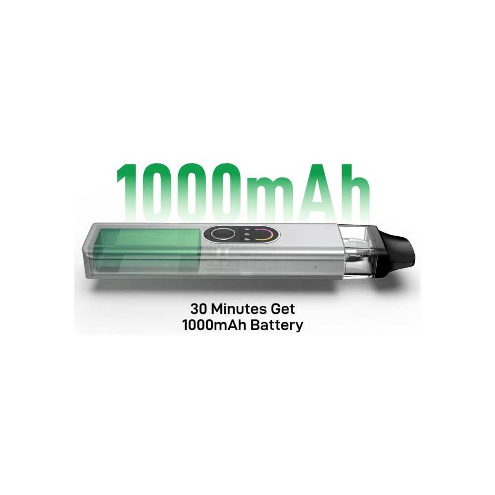 Oblíbenost elektronických cigaret XROS od Vaporesso stále strmě stoupá vzhůru. Proto se výrobce rozhodl představit již čtvrtou řadu tohoto prvotřídního zařízení s technologií Corex Heating Tech pro konzistentní chuť liquidu. Tělo baterie je vyrobeno z kvalitní hliníkové slitiny, která obsahuje monočlánek o kapacitě 1000 mAh s USB-C nabíjením a moderním AXON čipem. Na přední straně baterie se nachází spínací tlačítko a přehledný displej, který Vás informuje o stavu nabití baterie a umožním vám nastavení výstupního režimu. Vyměnitelná cartridge XROS o objemu 3 ml je kompatibilní se všemi modely této řady. Na vrchní straně baterie je umístěna důmyslná regulace přívodu vzduchu zajišťující skvělou dýmivost a autentickou chuť liquidu. Žhavicí hlavu je nezbytné pravidelně měnit pro zachování chuti a funkčnosti zařízení. Její výdrž je individuální.