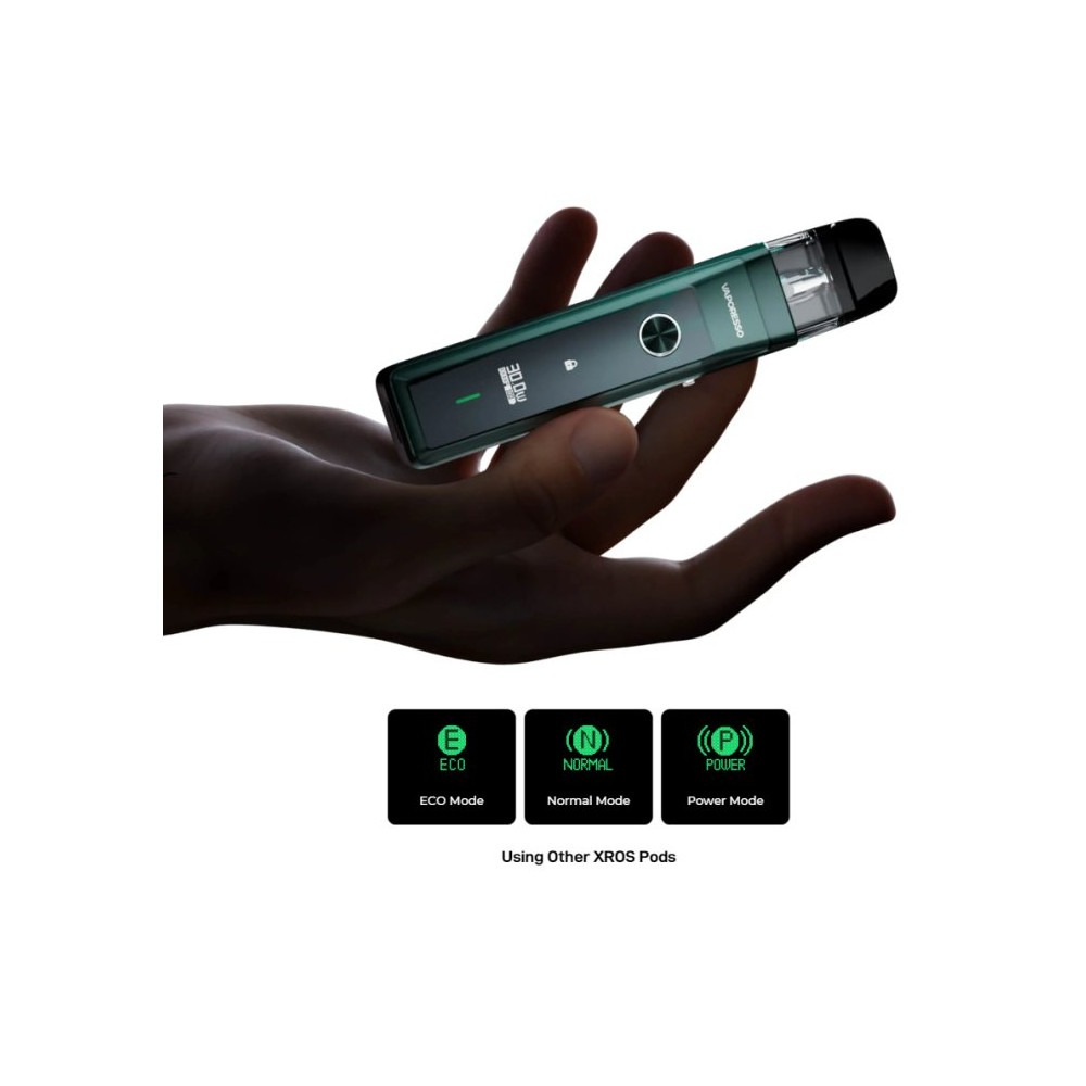 Nejpropracovanější a nejvýkonnější elektronická cigareta řady XROS od Vaporessa. Důmyslně zpracované tělo baterie disponuje monočlánkem o kapacitě 1200 mAh, moderním displejem a především čipem AXON, který nabízí režimy Super Pulse (stálý výkon bez ohledu na stavu nabití baterie), ECO, Normal a Power s výkonem až 30 W. XROS PRO je osazena cartridge s vrchním plněním, objemem nádržky 3 ml a Mesh spirálkou o odporu 0,4 ohm. Tato cartridge je vybavena technologií COREX Heating Tech - příjemný vaping v kombinaci husté páry a vyladěné chuti liquidu. Cartridge je plně kompatibilní s předešlými modely. Žhavicí hlavu je nezbytné pravidelně měnit pro zachování chuti a funkčnosti zařízení. Její výdrž je individuální.
